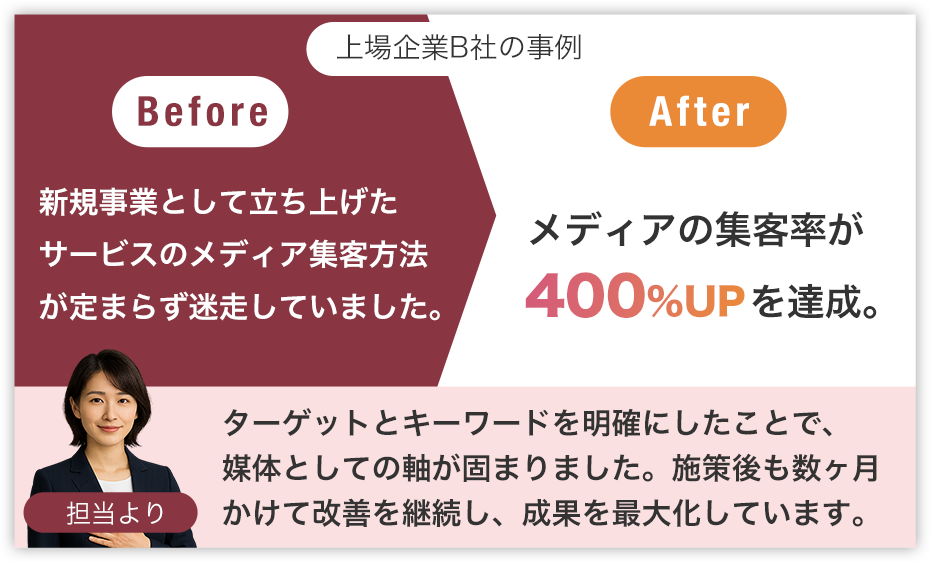 ミニマムな施策からでも対応可能で、成果報酬のお客様も多くいらっしゃいます。 - 成果が出るまでの期間は?